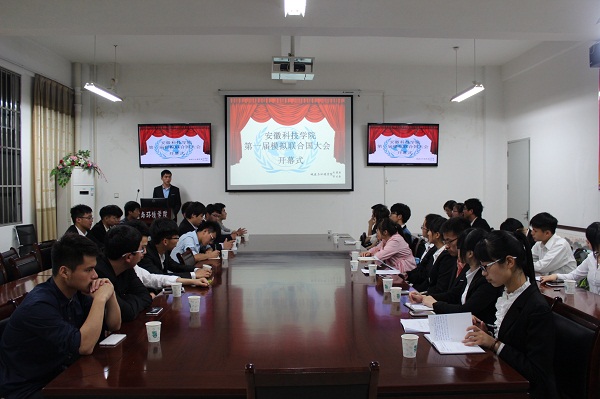 经过一个多月的筹备,由城建与环境学院分团委主办,城建与环境学院学生会、外国语学院学生会、化学与材料工程学院学生会、生命科学学院学生会、食品药品学院学生会、农学院学生会共同承办的第一届安徽科技学院模拟联合国大会于5月15日晚在城建与环境学院会议室正式拉开帷幕。各学生会代表和各会议专场主席团代表参加了开幕式。