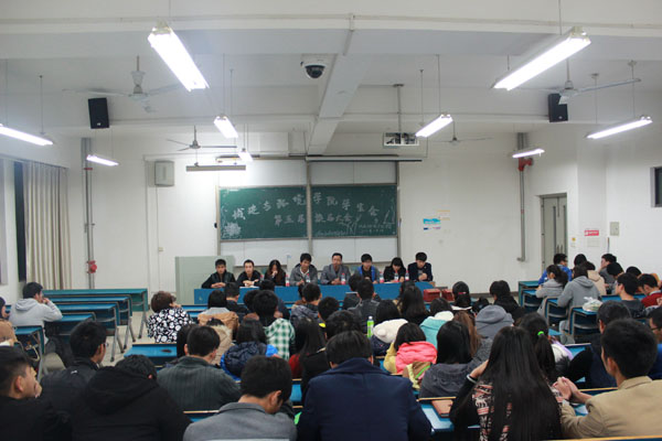 前任主席姚亮向新成员们介绍学生会的性质,并总结出三点工作经验:一是踏实认真,勇于进取,用踏实的心走下去,积极进取并向上奋斗;二是分工明确,团结协作,各个部门分工不分家;三是保持传统,敢于创新,丰富城环精神的内容。