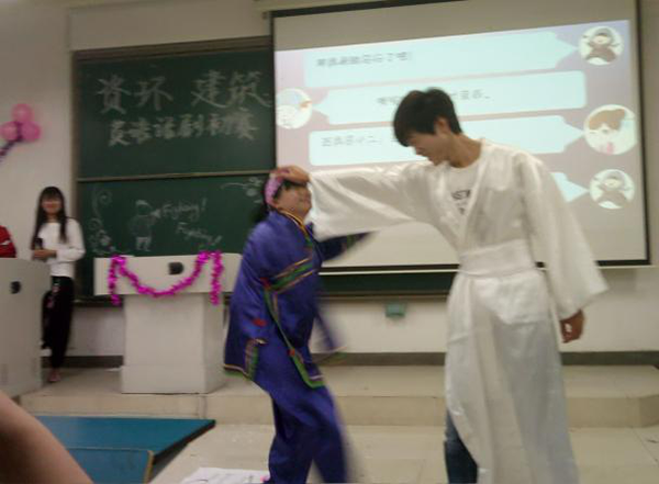 为活跃校园文化生活,拉近英语课堂与学生生活的实际距离,提高学生的英语应用水平和交际能力,4月9日晚7点,资源与环境学院以及建筑学院首届英语话剧大赛的初赛在我校隆重举行。资源与环境及建筑学院英语协会会长和各部门部长担任评委,学生会部门成员出席了本次比赛。