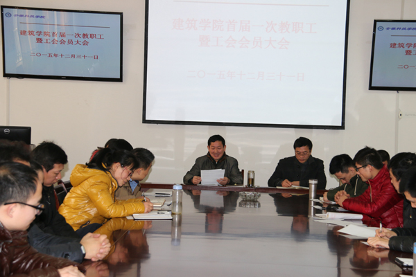 为总结本学期学院工作,同时对下一学年度的工作做好规划与展望,12月31日上午,建筑学院在学院会议室隆重召开了首届一次教职工暨工会会员大会。出席本次会议的有建筑学院院长张远兵、党总支书记傅友福、工会主席于敏、党总支秘书分团委书记耿广汉,以及建筑学院全体教职工。会议由傅友福主持。