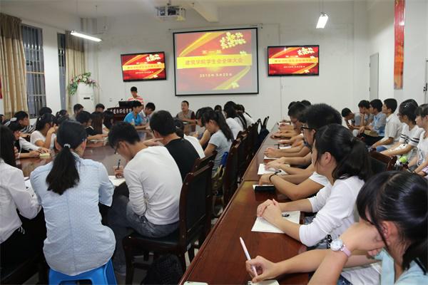 9月20日晚, 建筑学院第一届学生会全体大会在学院会议室召开。党总支秘书分团委书记耿广汉、辅导员靳盼、宗晓蕾及全体学生会成员参加会议。