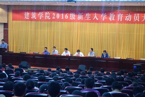 雄伟的国歌声拉开了2016级入学教育大会的序幕。首先,张远兵致辞。他代表学院领导以及全院师生员工向2016级新生的到来表示了衷心的祝贺和热烈的欢迎。在详细地介绍了建筑学院的历史沿革、学科体系、机构设置及办学特色和学科优势的同时,他从人生志向、努力拼搏、敢于担当,以及人生规划、做人和做事几个层面对新生提出了殷切期望。一是要脚踏实地,明确人生目标、志向高远。二是充分利用大学学习时光,博览群书,努力奋斗。三是要有担当和责任意识,不负时代赋予的责任,并要有大局和集体意识。他寄语各位新生要学会做人、学会做事,不断提升自己,用知识和智慧点亮人生。