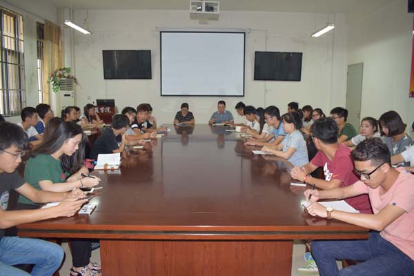 2016年8月31号建筑学院全体班长、团支书在学院会议室召开本学年第一次班级骨干全体大会。分团委书记耿广汉、分团委秘书长靳盼、辅导员吴汉参加了此次会议。