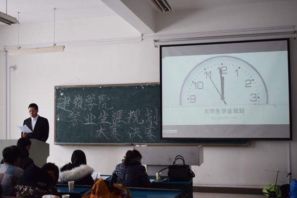 比赛分为PPT演讲和评委提问两个环节。在主持人宣读完比赛的流程及评分标准后,参赛选手依次上台进行演讲答辩。他们结合自身对个人学业生涯主客观条件进行评测、分析、总结,还对个人的兴趣爱好和能力特点进行综合分析与权衡。参赛选手结合时代特点,根据自己的专业方向,确定其最佳的学业奋斗目标,并为实现这一目标做出行之有效的安排。各具特色的讲述透露出广大学生对理想的憧憬,台下观众也不时迸发出热烈的掌声,最后评委根据参赛选手的表现对其提问并评分。比赛结束,辅导员靳盼对比赛做出总结,明确学业规划大赛的目的与意义。最后,主持人宣布建筑学院学业生涯规划大赛圆满落幕。