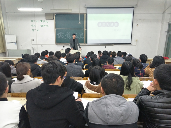 为加强学生考试诚信,课堂诚信等教育,强化学生诚信意识,培植学生感恩情感,3月30日,建筑学院在求A101成功举办了诚信感恩为主题的班会。建筑学院辅导员吴汉出席,2016级城乡规划全体学生参加。