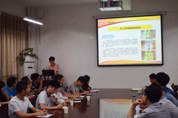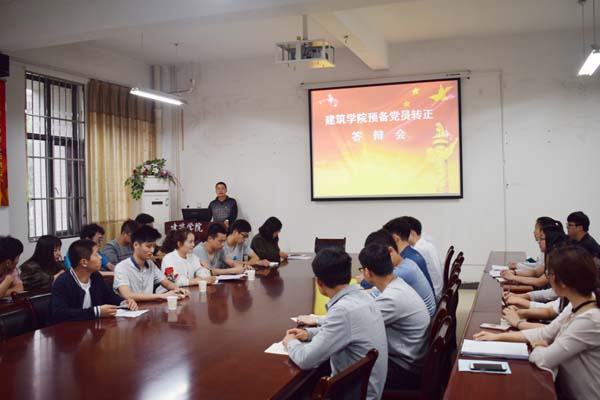 5月11日,建筑学院预备党员转正答辩会在会议室举行。党总支秘书、学生第一党支部书记耿广汉,学生第二党支部书记靳盼,党支部委员吴汉,全体学生党员参加答辩会。会议由靳盼主持。