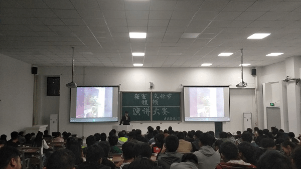 在主持人宣布比赛正式开始后,参赛选手依次上台,为观众播放微视频,展现寝室生活的点点滴滴,在播放视频的同时用生动活泼的语言进行解说。演讲者们纷纷表示,“在大学,寝室就是家,室友就是家人,大学四年的共处时光漫长而珍贵,因此与室友建立起深厚的友谊,创造一个良好的生活环境至关重要。”观众的目光被各个精致的微视频所吸引,每到演讲的高潮部分,赞叹声与掌声不绝于耳。部分参赛选手在演讲过程中表现出些许紧张情绪,但最终都能在观众的鼓励和自己的调整下顺利完成演讲。比赛结束后,四位评委对参赛同学的表现进行点评并做出了总结,指出了不足之处且提出建议。