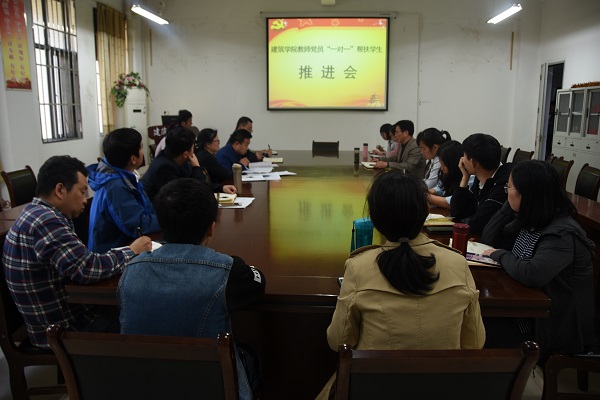 4月18日,建筑学院在会议室召开教师党员帮扶“学困生”推进会。党总支书记傅友福主持会议并解读了实施方案。25名教师党员向班主任详细了解了所要帮扶学生的情况,在为期一年内持续开展个性化辅导和跟踪式帮扶。