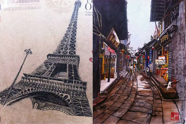 “吃得苦中苦,方为人上人”,包赟在高二前并未接触过手绘,仅在初中学过素描,出于对美术的热爱和想走艺考的道路,在父母的支持下,高二开始学习手绘,刻苦的训练使其手绘技能逐步提高。当我们问到他学习手绘的心得时,他意味深长地说:“一开始我手绘也是一塌糊涂,但是我深知画图是需要认真思考的,我每画一个物体都要考虑他的透视原理和明暗关系,画多了,自然也就熟练了。”因此,成功之花需要用辛苦的汗水来浇灌。