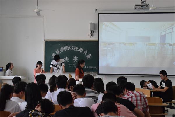 为促进广大建筑学子进入“心”时代,追求“心”健康,建筑学院心理剧大赛活动于5月13日下午于龙湖校区致知楼c108顺利举行。此次比赛由建筑学院分团委主办、建筑学院心理委员联合会承办,建筑学院辅导员靳盼、建筑学院16届学生会主席郭小囡、副主席刘琏、朱双双、王磊、建筑学院16届心理委员联合会副主席佘敬明担任本次比赛的评委。