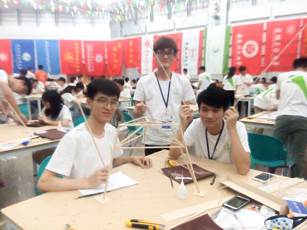陶冶主要负责的是统筹方面的事宜,孙小康和施陈杰两人主要负责模型制作、受力分析计算以及软件的操作。“团结”、“配合”是三人提到最多的字眼。在获得比赛三等奖之后,三人都坦言,在竞赛中收获了很多,认识到了很多强劲的对手,懂得了如何在高压环境下承受压力,增强了自信心,体会到了学有所用快乐。