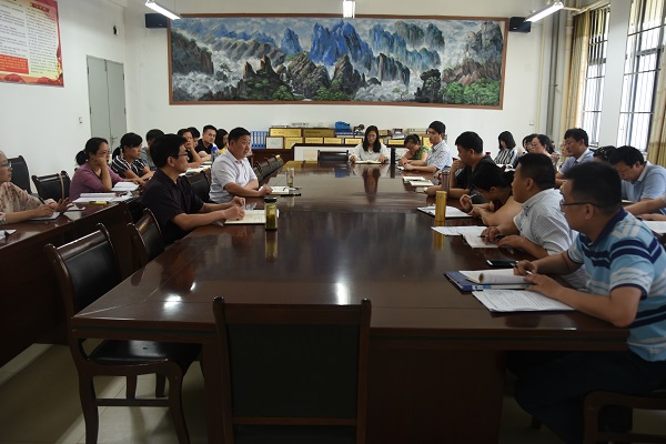 教务员高尚对期末相关教学事务,如:下学期开课计划落实和教材征订,四六级监考和本学期期末考试安排,毕业生论文上传和毕业生资格审查等相关事宜进行通报。吴伟东通报了5月份学校教学工作例会相关内容并传达会议精神,通报了教学督导情况、大学生创新创业和互联网+进展、翻转课堂开展、新专业遴选和申报、毕业前补考工作等内容。