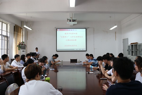 为贯彻落实党的十九大精神,激发当代大学生创新创业热情,6月7日下午,建筑学院于凤阳校区躬行楼2栋101会议室举办第四届“互联网+”大学生创新创业大赛校园初赛,本次比赛由校赛组委会办公室组织,建筑学院学生会实创部承办。校学生科科长石志成、建筑学院分团委书记耿广汉、建筑学院分团委老师宗晓蕾、建筑学院分团委老师吴汉、建筑学院副教授吴伟东担任本次比赛的评委。