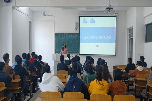 10月24日下午, 建筑学院在致知楼C208教室举办2018级新生心理委员工作培训。培训由国家三级心理咨询师、副科级辅导员靳盼主讲,学院2018级各班级班长、团支书,心理委员参加了此次工作培训。