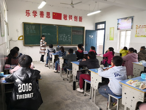 志愿者们进入百大杏山小学校园后,看到的就是一张张微笑的脸庞,孩子对志愿者们的到来很是欢迎。课堂上,团队成员与小朋友们配合密切。团队成员赵青青以标准的英语发音、幽默的故事去解释每个单词的含义,耐心讲解,悉心辅导,小朋友们争先恐后的展示自己所学会的单词。吕慧亮以语文的修辞手法为主要授课内容,用“飞流直下三千尺,疑是银河落九天”来解释了夸张手法,用古浪月行这首诗让小同学们明白什么是比喻词和比喻句,随即与小同学们进行互动,让他们彻底深入,用比喻词造句。鼓励小同学们勇敢发言,最后对小同学的错误进行了纠正。一节课就这样在欢声笑语中结束了。下课期间团队成员向同学和老师发放便利贴来征求大家对于支教活动的意见,为下次的到来做好更充分的准备。