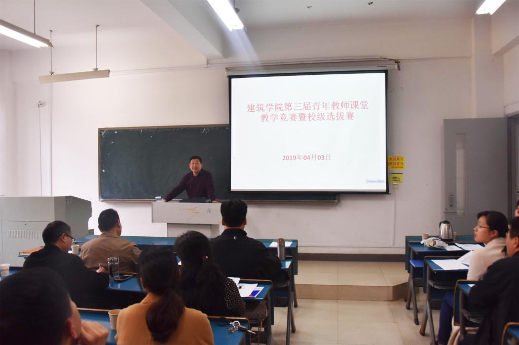 为加强青年教师队伍建设,促进青年教师不断提高教学水平和教学质量。根据人事处“关于开展第五届青年教师课堂教学竞赛的通知”和“建筑学院关于开展第三届青年教师课堂教学竞赛的通知”文件精神,在各系选拔推荐的基础上,学院于4月3日下午在新知楼A109开展青年教师课堂教学竞赛暨校级选拔赛。竞赛由建筑学院张远兵院长主持,学院所有专职教师到现场观摩比赛。