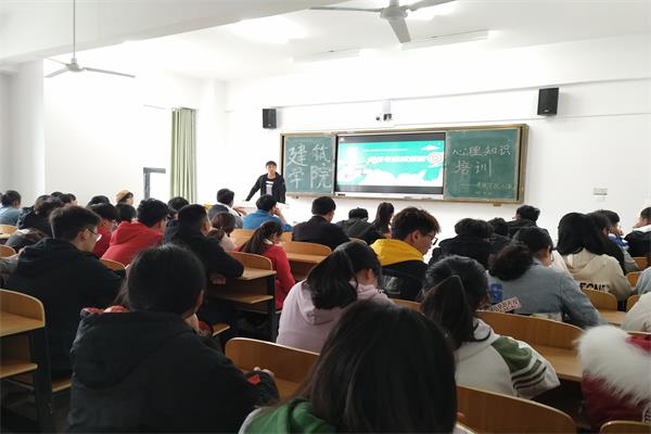 4月10日下午,建筑学院在致知楼c310举办心理委员和宿舍健康宣传员培训工作,此次培训由院心理联合会副会长徐波同学主讲,学院2018级心理委员及宿舍健康宣传员共计90人参加此次培训活动。