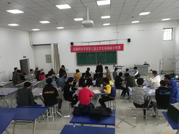 4月13日至14日,由建筑学院承办的安徽科技学院第三届大学生结构设计竞赛决赛在龙湖校区举行。本次比赛从3月初启动以来,共收到25组同学报名,4月1日由竞赛工作组对结构设计方案进行初审,共评选出15组进入决赛。13日上午进行决赛的精彩对决。建筑学院院长张远兵,专任课教师杨瑞敏、于敏、肖昕迪、徐晓阳、韩意、袁玲、程希颖等出席。