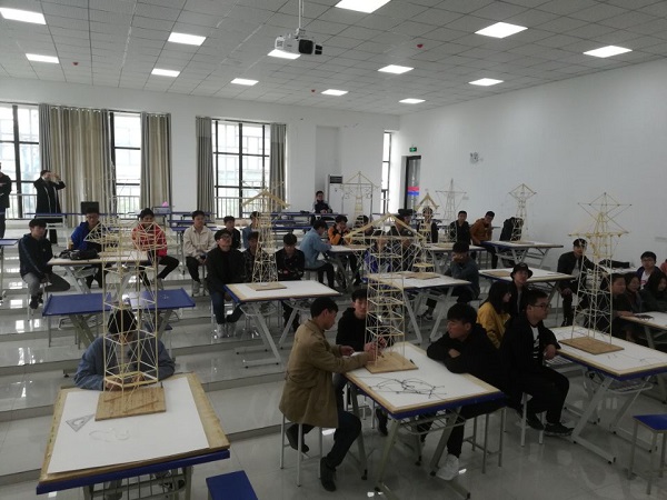 本次决赛赛题为国赛试题,包括理论方案设计、模型制作、陈述与答辩和模型加载试验等环节技术要求高,制作难度系数大。经过12个小时的现场模型制作、4个小时的加载试验。最终,土木17级庞强、吴国强和汪梓豪代表队斩获桂冠,张文强等三人、马晓东等五人获得二、三等奖,周邦等四人获得优秀奖。