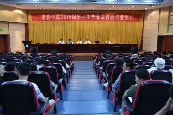 6月3日下午,建筑学院2019届毕业生毕业教育暨毕业典礼在新图书馆二楼报告厅举行。学院党政领导、教研室主任、辅导员班主任及毕业生参加,分团委书记耿广汉主持典礼。