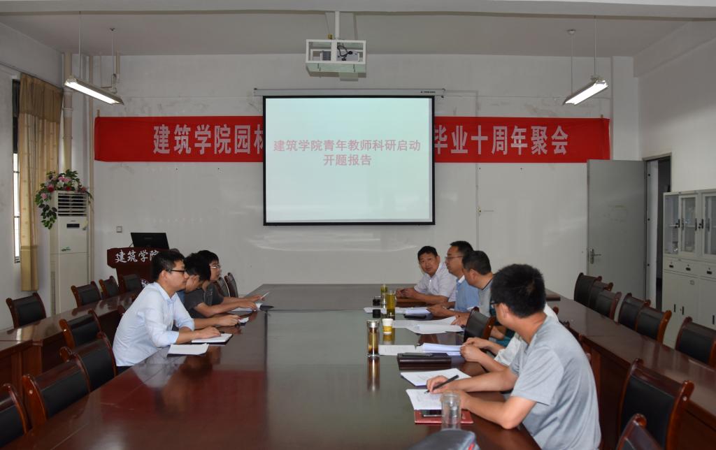 根据安徽科技学院引进人才科研启动基金有关规定,按照学校人事处有关文件及学院工作安排,7月18日上午,建筑学院在学院会议室召开青年教师科研启动开题报告会,校科研处副处长鲍方印教授、农学院副院长高青海教授、资环学院副院长李孝良教授等几位领导莅临我院,对我院青年教师科研启动情况进行了深入的指导,会议由建筑学院院长张远兵教授主持。