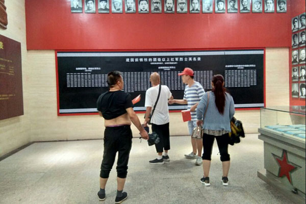 26日-27日,实践团成员征得金寨县烈士陵园领导同意,在园内担任讲解志愿者,细心向来往的游客讲解红色文化,宣扬红色爱国精神。馆长对志愿者们宣传红色文化行动表示赞同,给于高度评价,提出青年大学生应当勇做中华好儿郎,应当铭记历史,传承好红色基因。