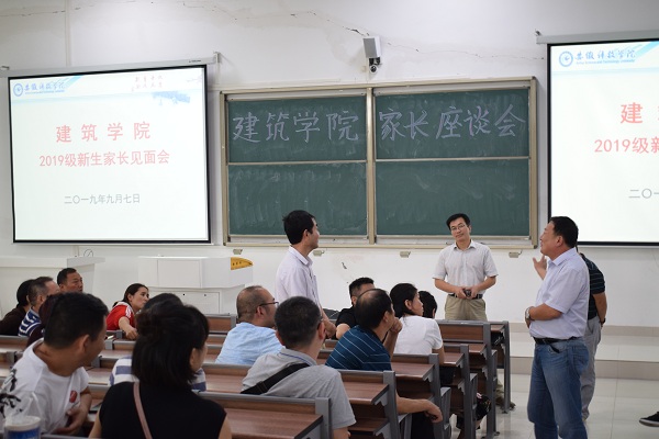 为增进家长对学院办学和人才培养的了解,9月7日下午建筑学院在龙湖校区举办2019级新生家长见面会,100多名家长参加交流,建筑学院院长张远兵,党总支书记傅友福,2019级新生辅导员沈德艳、宗晓蕾、阮怀思出席,团委书记耿广汉主持见面会。