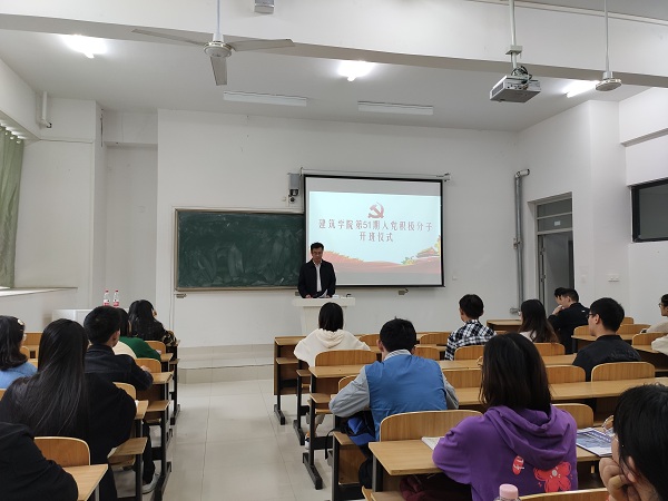 为加强入党积极分子的培养教育,帮助入党积极分子提高政治觉悟,加强党性修养,进一步端正入党动机,为开班学习打下思想基础,10月13日上午,建筑学院于致知楼C109开展第51期入党积极分子培训班开班典礼。建筑学院党总支书记傅友福和全体51期入党积极分子参会。会议由辅导员宗晓蕾主持。