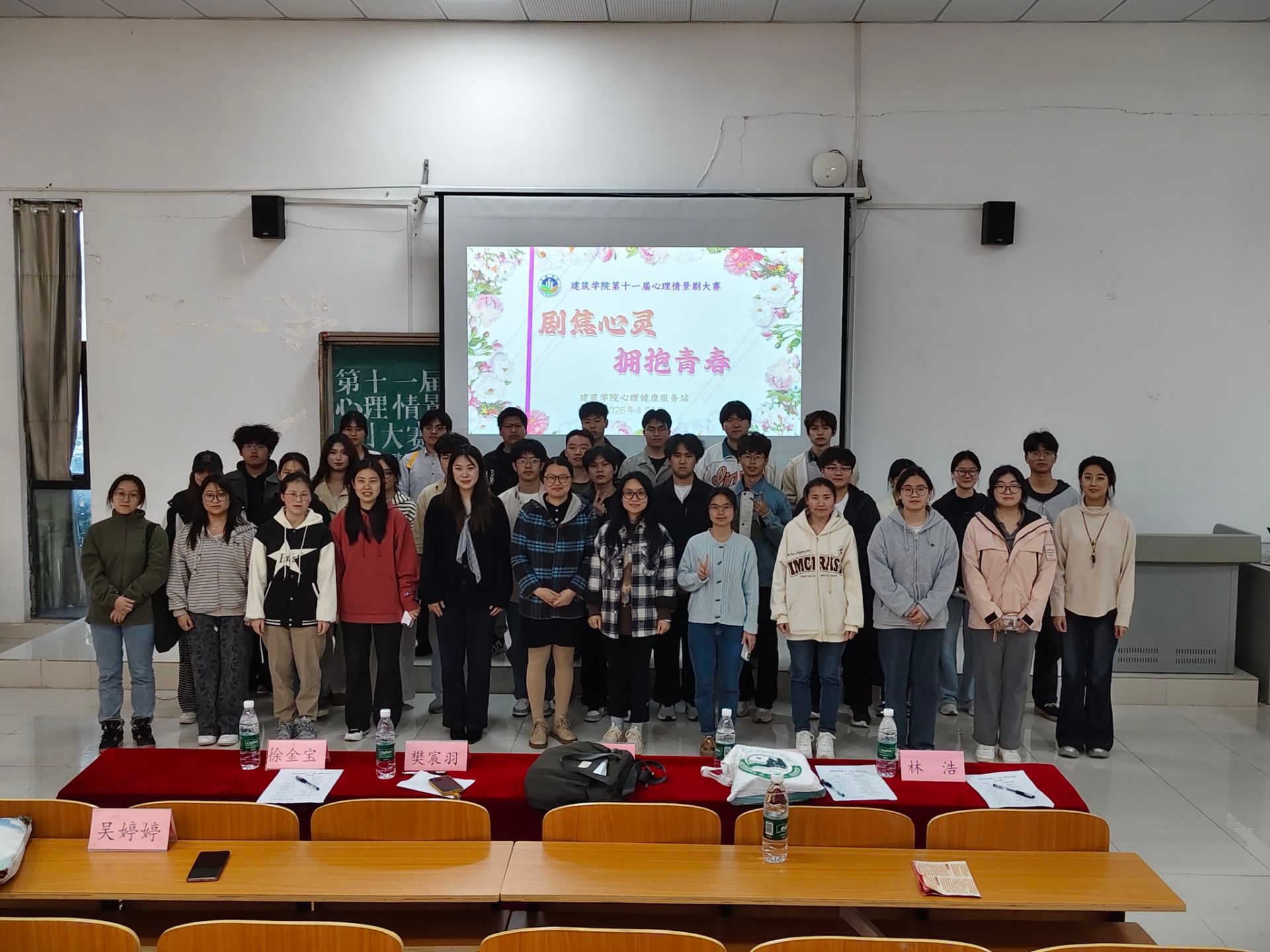 为加强心理健康教育,丰富校园文化,4月1日下午,建筑学院在敏行楼C102成功举办第十一届心理情景剧大赛。建筑学院党委副书记谢宜勤到场指导,学院团委书记沈德艳、学生处樊宸羽,信网学院心联会长徐金宝、熊好,以及本院心理站长林浩担任评委,2025级新生辅导员与全体新生参加本次大赛。
