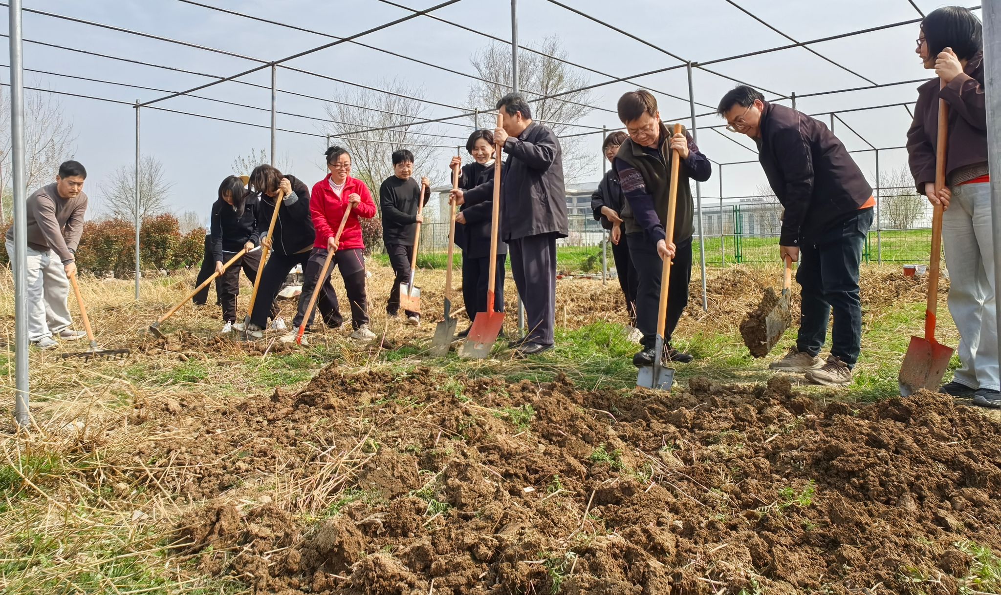 活动现场,老师们热情高涨、分工协作,翻土、整地、播种、培土,每个环节一丝不苟、有条不紊。老师们以专业的视角规划种植布局,用扎实的行动体验农耕乐趣,在挥洒汗水中实现劳动价值,在通力合作中凝聚支部力量。此时,田间地头忙碌的身影,与春日的盎然生机相映成趣,构成一幅生动的实干画卷。
