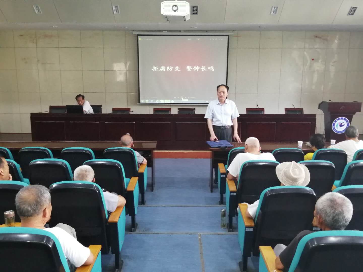 6月19日下午,在会议中心一楼报告厅,离退休党总支组织离退休职工观看校纪委统一发放的警示教育片《贪欲之害》和《致命的决口》。
