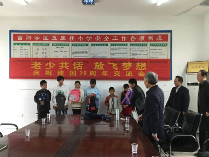 在新中国成立七十周年之际,10月24-25日,校关工委及离退休党总支第一党支部一行6人,在关工委副主任郝振中及秘书长时乾的带领下,赴涡阳县西阳镇王桥村五座楼小学开展扶贫爱心助教活动。
