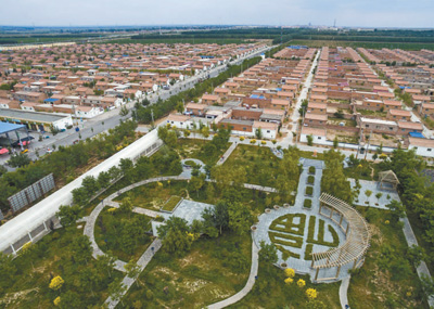 站在自家宽敞的小院里,63岁的谢兴昌可以望见镇区一排排新房,宽阔的马路直直伸向远方的贺兰山。