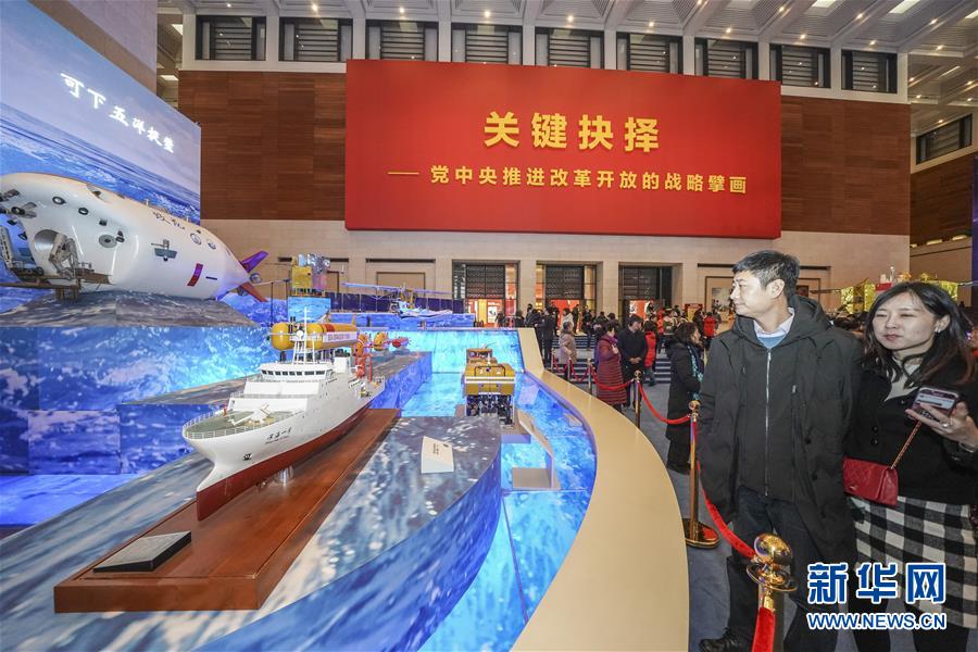 观众在北京中国国家博物馆参观“伟大的变革——庆祝改革开放40周年大型展览”(1月3日摄)。新华社记者 殷刚 摄