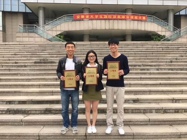 近日,由安徽省教育厅主办、安徽财经大学承办的首届大学生国际贸易综合技能大赛在蚌埠市落下帷幕。此次大赛共有45所本专科院校、111个团队参与角逐。我校财经学院闫富雄、李强老师指导的“凤阳龙兴御液酒”团队荣获二等奖,余吉祥、陶秀玲老师指导“特斯拉(电动)汽车”团队和段玉彬、王中涛老师指导的“濮阳秸秆画”团队荣获三等奖。
