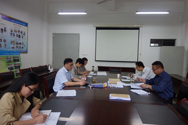 6月7日下午,校党委委员、党委(校长)办公室主任曾献功在组织部秘书于洋的陪同下,督导管理学院“两学一做”学习教育开展情况。管理学院党总支书记姚勇、各支部书记参加汇报座谈。