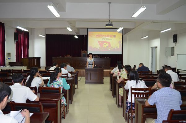 按照学校党委关于开展“党课进基层”活动的工作要求,为推动学院“两学一做”学习教育深入进行,进一步帮助党员干部学习党章、理解党章,6月20日上午,人文学院党总支书记在模拟法庭开展了专题党课学习活动。党课由党总支书记杜士凤主讲,学院其他党政领导班子成员以及全体教师党员参加了听课。管启飞老师作为民革党代表应邀列席党课。