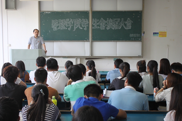 5月17日上午,管理学院于新知楼A108教室召开2016年学生会换届大会,院党总支副书记丁景良出席本次会议,学生会指导老师李永鹏和学生会全体人员参加了会议。
