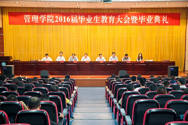 四年师生情,今夕暂别离。满堂祝福语,只赠学子行。6月16日上午,管理学院2016届毕业生教育大会暨毕业典礼在新图书馆二楼报告厅举行。管理学院党政领导及各教研室主任、毕业班班主任和2016届439名毕业生参加了此次毕业典礼。典礼由党总支副书记丁景良主持。