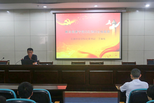7月8日上午,校党委委员、纪委书记丁和生在新图书馆一楼报告厅以“做自觉遵守党的纪律的合格党员”为题为二级学院教职工党员讲授“两学一做”专题党课。生命科学学院、机械工程学院、外国语学院全体教工党员聆听了党课。党课由机械工程学院党总支书记张开宝主持。