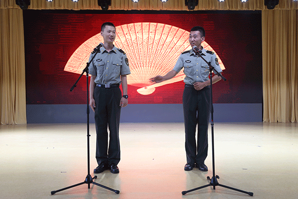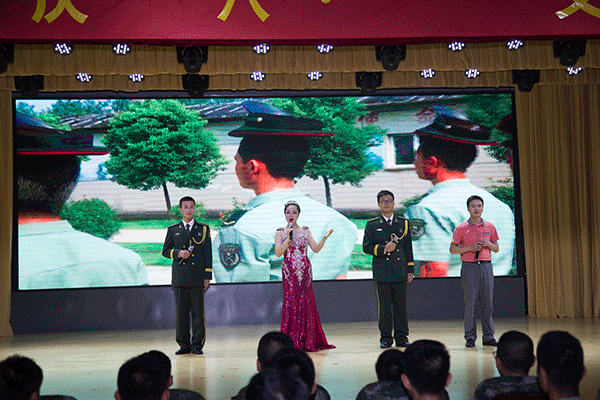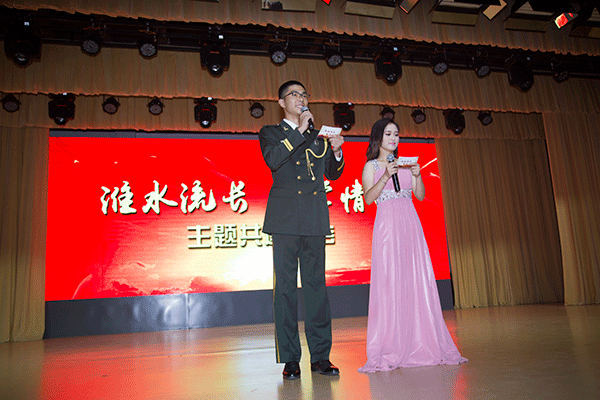 晚7时30分,主题为 “淮水流长,军学情深”共建晚会在装甲兵学院礼堂隆重上演。蒋德勤、韦文联、中国人民解放军装甲兵学院副政委刘捷、教练团全体团领导和全团官兵一同欣赏了精彩的文艺演出。军乐合奏《中国军魂》,配乐朗诵《嘹亮军歌响珠城》,凤阳花鼓《鼓乡情怀》、《火火的花鼓敲起来》,民族舞蹈《落花》,泗州戏《断桥》,独唱《咱老百姓》、《英雄赞歌》,合唱《为了谁》等精心编排的节目,融合了时代精神、军旅作风、传统艺术和人文特质,是两校友好合作的力作,也是大学生社会实践团送文艺进军营的系列安排。