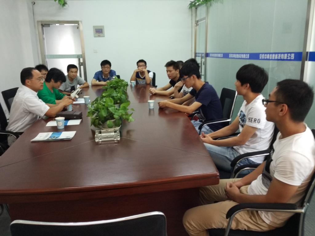 在合肥市高新区动漫产业园,调研组考察走访了北京奥拓思维软件有限公司合肥分公司。宾主双方就如何解决当前大学生中存在的问题、校企合作加强学生时间动手能力等方面的问题展开交流和探讨。公司研究院院长高荣全和人事部经理还带领全体调研组成员参观了学生学习、工作和娱乐等公司场所。