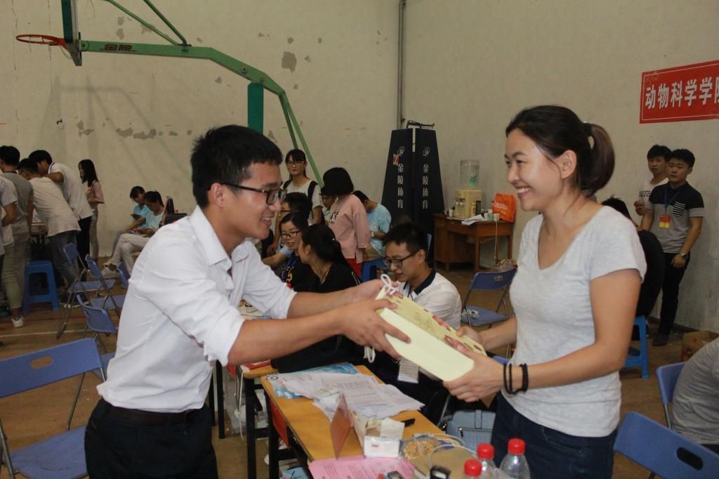 原来这是该学院学生社联的同学们开展的“欢度中秋佳节,弘扬传统文化”活动,同学们现场将一盒盒亲手制作,包装精美的月饼送到参与迎新工作老师们的手里,感谢他们放弃休假时间,坚守在迎新一线,更感谢他们扎根安科,日复一日,年复一年的辛勤教学。