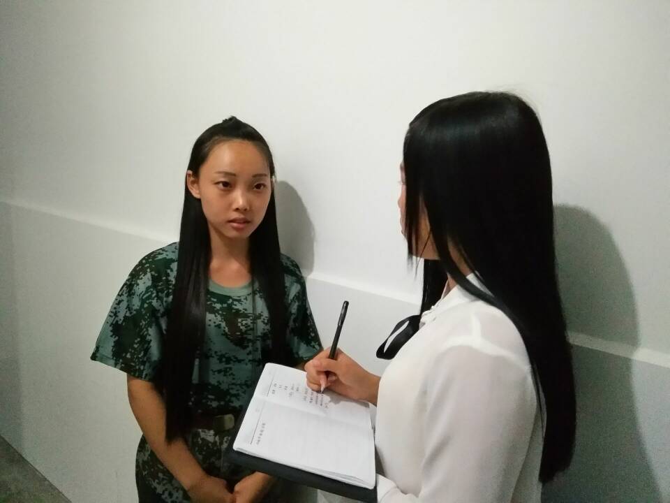 虽然家在外地,新生无法回去和家人团聚,但在校园里,他们也过着充实、难忘的中秋节。46连的新生史天宁,来自无机非金属材料161班,家在天津,今年的中秋节也是第一次在外地过,与军训的同学们共度美好的时光。据他介绍,今天下午他们的教官带着他们一起欢庆了佳节,和其他的连队一起举办了“安科好声音”活动,由同学们充当选手,现场PK互动,教官担任评委,场面气氛热烈,同学们激情高涨。