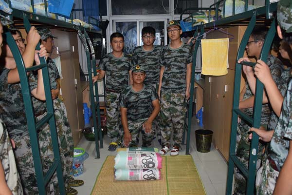 检查人员本着严格要求,一丝不苟的原则,对学生内务整理情况进行认真检查,检查主要从“空气清新、干净整洁、床铺平整、物品摆放、整体面貌”五方面下手,对于不符合要求的地方会有针对性的提出改进意见。检查中,辅导员和教官们深入各楼层学生宿舍,对宿舍的卫生状况、整洁程度、桌面摆放情况等多方面进行了考核。检查中,军训教官亲自为同学们示范被子的折叠方法。辅导员和教官还利用这次机会与同学们就军训情况、宿舍住宿情况等问题进行了交流,他们勉励同学们继续坚持、努力训练,争取在接下来的军训过程中取得更好的成绩。