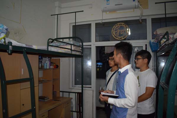 为引导新生形成良好的生活习惯和高效率的生活作风,提高自我管理的能力。9月16日晚,辅导员吴汉、军训教官及班主任助理朱双双对2016级新生宿舍展开全方位的内务检查。