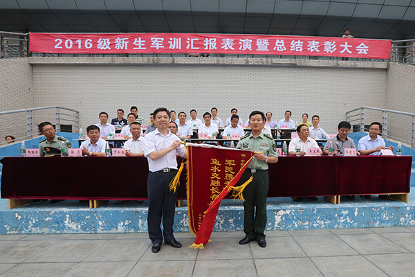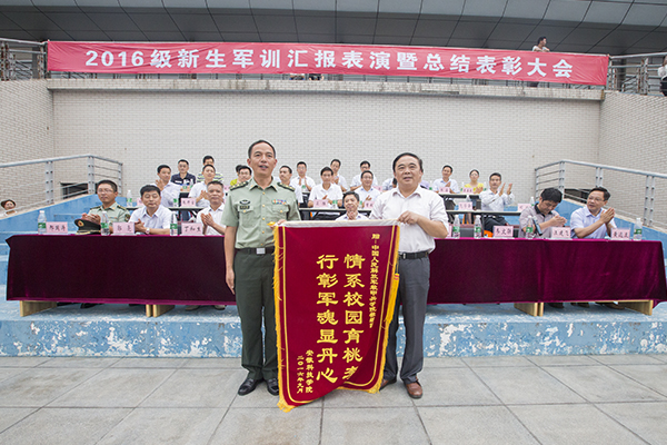 随后,蒋德勤、韦文联分别向余金炎和顾成国赠送锦旗。党委学工部部长、学生处处长、军训团政委何永勇宣读表彰决定。