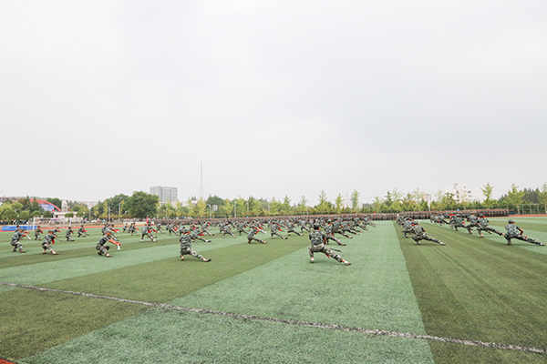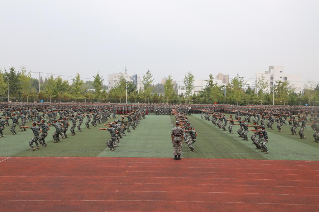 大会在雄壮的国歌声中拉开帷幕,蒋德勤宣布军训汇报表演开始。随后,标兵就位,分列式开始。伴着欢呼声,五个营,四十七个连的军训学员以整齐的队列、嘹亮的口号、威武的军姿跨着正步依次走过主席台接受检阅;由擒敌拳方队、女子队列方队、大刀特色方队、女子军体拳方队组成的特色营方阵依次进行表演;学员们昂扬的斗志、严明的纪律,充分展现了两周来的军训成果。