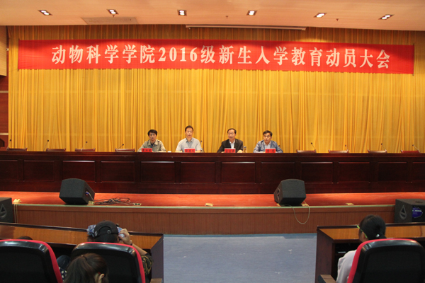 金秋九月,丹桂飘香。9月28号晚,动物科学学院2016级新生入学教育动员大会在新图书馆第二报告厅隆重举行。学院党总支书记刘德义,院长王立克,副院长戴四发,党总支副书记李忠出席会议并在主席台就座。大会由刘德义主持。学院全体辅导员和2016级344名新生参加大会。