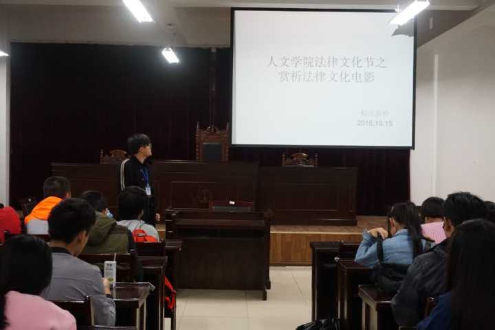 10月15日上午,人文学院首届法律文化节系列活动之一“经典法律电影赏析”在模拟法庭开始首播。该系列电影展播活动由人文学院分团委主办、校法新社承办。
